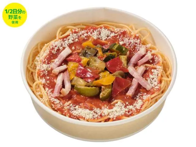 グリル野菜とベーコンのトマトソースパスタ